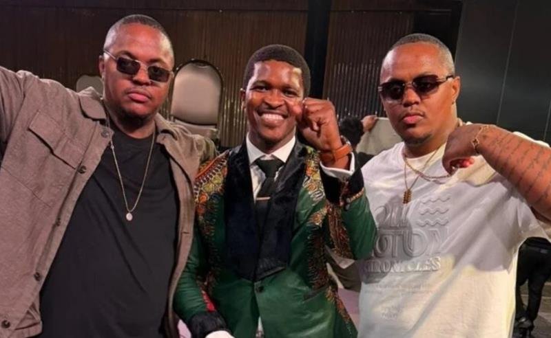 (Na foto: Gêmeos do rap e Siyabulela Mandela, bisneto de Nelson Mandela)