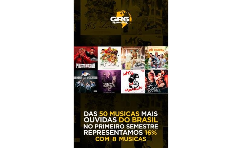 GR6 emplaca 8 faixas entre as 50 músicas mais ouvidas do Brasil no primeiro semestre de 2025