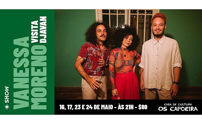 Intitulado “Experimentos em: Vanessa Moreno visita Djavan”, o evento acontece aos finais de semana, nos dias 16, 17, 23 e 24 de maio